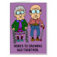 Here's To Growing Old Together funny and cute card featuring an old couple cartoon. Blank inside for your own personal message. A great design for an anniversary.