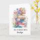 Personalised encouragement card for a new chapter, a new job, moving away and more. The front features a stack of beautiful watercolor books with flowers and a cup of coffee on top. You can easily personalise the front of this new chapter card with her name if wanted. A unique card for coworker, friend, colleague, etc.