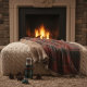 A quality printed throw has its advantages. This is a much finer weave throw than its loopier cousins, and though lighter, it is worth the investment for custom room accessorizing. The back is much prettier than the typical brown, and the fringe on the long sides very vivid, the selvage nicely done. Before photographing, I washed the throw in cold water, delicate, with a thicker woven throw the same size. On tumble dry low, this throw was dry in half the time as the other. This is a very practical quality if you use throws for furniture covers or to wrap up in frequently. The sleekness of the fabric makes it a great layer for accenting or protecting without the feeling of sitting on too much stuff. Perfect for napping or when you feel a light chill coming on. The color printing is beautiful and on this fabric, matched the design and color of my Photoshop image. This is an advantage for blending room fabrics and colors. The fringe on the short sides prints the colors from the design image and therefore varies from the side fringe. I streaked a white fractal line through the plaid pattern to give the illusion of weaving. This printed as crisp as an illusory thread, and put some white in the short side fringe, showing another advantage of print vs loomed- for artistic purposes, line lines, detail, and color integrity can be planned and preserved. My loomed throws have color limitations and more of a needlepoint texture. Print throws reproduce an exact image. The throw felt a little stiff straight out of the package, but this went away in the first delicate wash. Of course I searched the wash water for ink or bleeding and there was none.