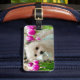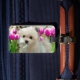This product features Hermes, a sweet little Maltese Puppy Dog standing among some lovely Spring Tulips.