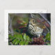 Lovely Hermit Thrush (Catharus guttatus) perched on Sumac berries in Fall. Size - Horizontal: 5.6" x 4.25" Ultra-heavyweight (120#) card stock with a gloss finish. Printed with a unique process that imparts a rich depth of imagery and an almost 3D-like effect. Also available as a Note card or Greeting Card.