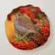 Hermit Thrush Songbird on the Scarlet Firethorn Round Cushion