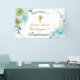 Hermoso Azul Floral Oro Cruz Bautismo Bienvenido Banner
