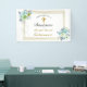 Dé la bienvenida a los invitados al bautismo de su hijo cuando muestre esta hermosa pancarta de bienvenida de bautismo con cruz dorada y flores azules. Este elegante letrero de bienvenida para bautizo presenta un bonito marco cuadrado dorado y una cruz dorada decorada con hermosas flores azules de acuarela pintadas a mano. Personalice con el nombre de su bebé. Es de género neutral y perfecto para un bautismo de niño o niña.