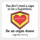 PASS IT ON ... Adorable Superhero Organ Donor Awareness Square Sticker. Available in 2 sizes - 1.5"/20 Stickers - 3"/6 Stickers. Donate life, kidney, liver, heart.