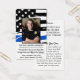 Thin Blue Line Police Memorial Prayer Card in a modern American flag design in police flag colours. Personalise this police memorial prayer card with your police officer's photo, department, name & dates. Perfect for police departments to honour a fallen officer, and law enforcement memorial keepsakes. Front Quote "Greater love has no one than this: to lay down one's life for his friends." John 15:13 ~ Back quote "A Hero is...someone who has given his or her life to something greater than oneself." and Prayer "We Hold You Close." Please reach out if you would like a custom prayer. COPYRIGHT © 2020 Judy Burrows, Black Dog Art - All Rights Reserved. Hero Police Officer Memorial Funeral Prayer Card