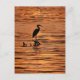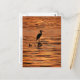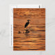 This fine art postcard presents a Great Blue Heron (ardea herodias) in silhouette, fishing in the shallow waters of Cayuga Lake in Ithaca, NY which is one of the Finger Lakes of upstate New York. A beautiful orange, yellow and gold sunset colours the waves and ripples in an abstract pattern.