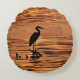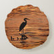 This decorative fine art round pillow presents a Great Blue Heron (ardea herodias) in silhouette, fishing in the shallow waters of Cayuga Lake in Ithaca, NY which is one of the Finger Lakes of upstate New York. A beautiful orange, yellow and gold sunset colours the waves and ripples in an abstract pattern.
