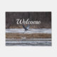 Welcome doormat featuring a beautiful Great Blue Heron taking off at Springfield Lake in Springfield, Missouri, United States. Looking for more prints or products? Feel free to visit my store: http://www.zazzle.com/timelessmomentsphtgy