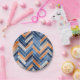 Herringbone Pattern in Navy Blue and Orange Paper Plate