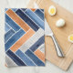 Herringbone Pattern in Navy Blue and Orange Tea Towel