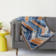 Herringbone Pattern in Navy Blue and Orange Throw Blanket