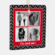 Modern Christmas photo collage in red and black with room for four photos. Black herringbone pattern and bright red accents with editable text.