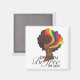 This magnet is from my Hers and Hers line. It is an image of an African American woman. She has natural hair, with rainbow stripes. The rainbow stripes represent the LGBT flag.