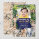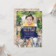 This "Wild One Boy 1st Birthday Jungle Safari Themed Invitation" is perfect for celebrating a little adventurer's first birthday. The design features a personalised photo at the top, surrounded by charming watercolor depictions of jungle safari animals like giraffes, lions, chimpanzees, zebras, tigers, raccoons, and toucans, all set against a backdrop of lush green leaves. The invitation includes personalised details such as the birthday boy's name, date, time, and place of the event, ensuring a unique and memorable touch. Printed double-sided, the invitation showcases an animal print pattern on the back, and is available in three colour options: white, blue, and navy blue, catering to different preferences and party themes.