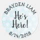 He's Here, New Baby Boy Announcement Classic Round Sticker