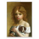 Little girl is pouting and holding her dog in her arms. She is saying, he's not for sale and appears ready to fight to keep her puppy.