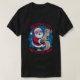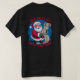 A fun, festive, and colorful cartoon illustration of Santa Claus happily holding a long, rolled-up "Naughty/Nice List." The background is a vibrant blue with white snowflakes and evergreen trees, enclosed by a circular border. Bold, red and white text prominently features the phrase: "HE'S ON A LIST AND IT'S NOT MINE." This design has a distinct, appealing retro or vintage feel, perfect for holiday apparel or greeting cards.