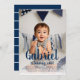 He's Turning One Navy Boy's First Birthday Photo Invitation