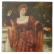 This design features a painting by the English Victorian artist Frank Dicksee (1853–1928). It shows Hesperia, one of the nymphs in ancient Greek mythology, who were goddesses of evening and the golden light of sunsets. In the myth, Hesperia guards golden apples growing from a special tree. Hesperia is depicted here as a beautiful woman wearing a long contemporary red dress. She is standing in an elegant guardian. The original artwork was painted by Frank Dicksee in 1887.