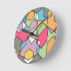 This clock has a Bauhaus-inspired design of overlapping hexagons in pastel colors.