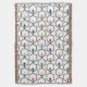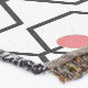 This throw blanket has a mid-century modern design made of hexagons chained together with a circle on a peg inside each.
