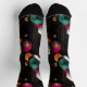 Hexagonal Abstract in Emerald, Orange on Black Socks