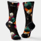 Elevate your style with these hexagonal abstract socks, showcasing bold emerald, orange, and white geometric shapes on a striking black background. The design features layered hexagons, glowing accents, and metallic details, creating a futuristic and dynamic aesthetic. Perfect for art lovers, tech enthusiasts, and modern fashion fans, these socks bring a bold and unique flair to any outfit.