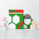 This wrapping paper has a Christmas geometric design of hexagons in sets of three that look like flowers in red, white, and green.