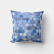 Many shades of blue, in a fun geometric pattern of hexagons, which are six-sided shapes. Shades range from pale aqua to smoky blue and sky blue, so you can match all your decor. Looks gorgeous with white, on a white couch or chair.