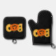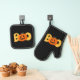 Hey Boo Cute Pumpkin Typography Drawing Art Oven Mitt & Pot Holder Set
