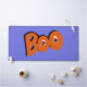 This Halloween and classic one simple word quote retro old school style image design features orange colour lettering with black outline backing, cute barely scaredy boo eyes, periwinkle blue purple dots and overall background colour to match on many products.
