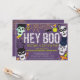 Celebrate your little ghoul or goblin with this festive "Hey Boo" Halloween birthday invitation! Featuring a playful skeleton crew, colourful candies, spider webs, and a bold purple background, this design sets a spooktacular tone for a costume party.
