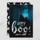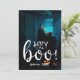 Hey Boo! Halloween Photo Holiday Card with the family name and you can change the colours. With a cute ghost and bat background.