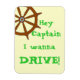 Funny cruise magnet with a ship's wheel says "Hey Captain - I wanna DRIVE." (Every true seaman knows the captain doesn't drive the boat - he STEERS the SHIP)