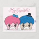 Funny postcard of two cupcakes with moustaches. Postcard reads "Hey Cupcake!"