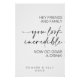 This minimal style 'Hey friends and family, you look incredible, now go grab a drink' design is a fun way to decorate the bathrooms at your wedding.