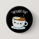 Hey Hot-Tea Funny Cuppa Tea Pun Dark BG 6 Cm Round Badge