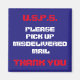 This is a magnet for your mailbox for those occasional misdeliveries. There is red and white text against a royal blue background.