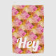 Pink and orange watercolor geometric pattern golf towel with “Hey” on the front. Easy to customise.