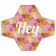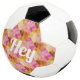 Pink and orange watercolor geometric pattern soccer ball with “Hey” on the front. Easy to customise.