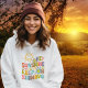 This "Hey Sunshine, Keep on Shinning" hoodie features a quote with retro flowers.