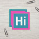 A modern and contemporary design with a bold "Hi" and brilliant colours and a gold border.