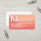 Make a great first impression and introduce yourself to potential clients with our "hi my name is" business cards. The design features "hi" in a modern typographic design with a diagonal text shadow. Stylish coral gradient adds a modern bold look. Personalise with your name, title and contact information. The reverse side is designed in clean minimal style with personalised monogram and social media handle.
