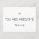 Hi You Are Awesome That Is All Customisable Colour Postcard