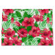 Watercolor pattern design with hibiscus flowers and palm leaves