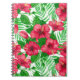 Watercolor pattern design with hibiscus flowers and palm leaves