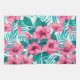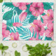 Watercolor pattern design with hibiscus flowers and palm leaves