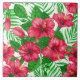 Watercolor pattern design with hibiscus flowers and palm leaves