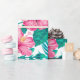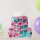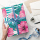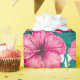 Watercolor pattern design with hibiscus flowers and palm leaves
